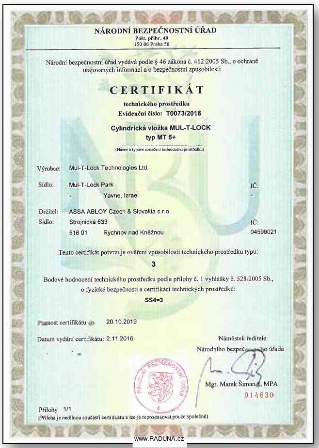 - výroba klíčů výhradně po předložení magnetické bezpečnostní karty na výrobu klíčů pouze ve vybraných servisních střediscích vybavených speciálním strojem Mul-T-Lock KC5®