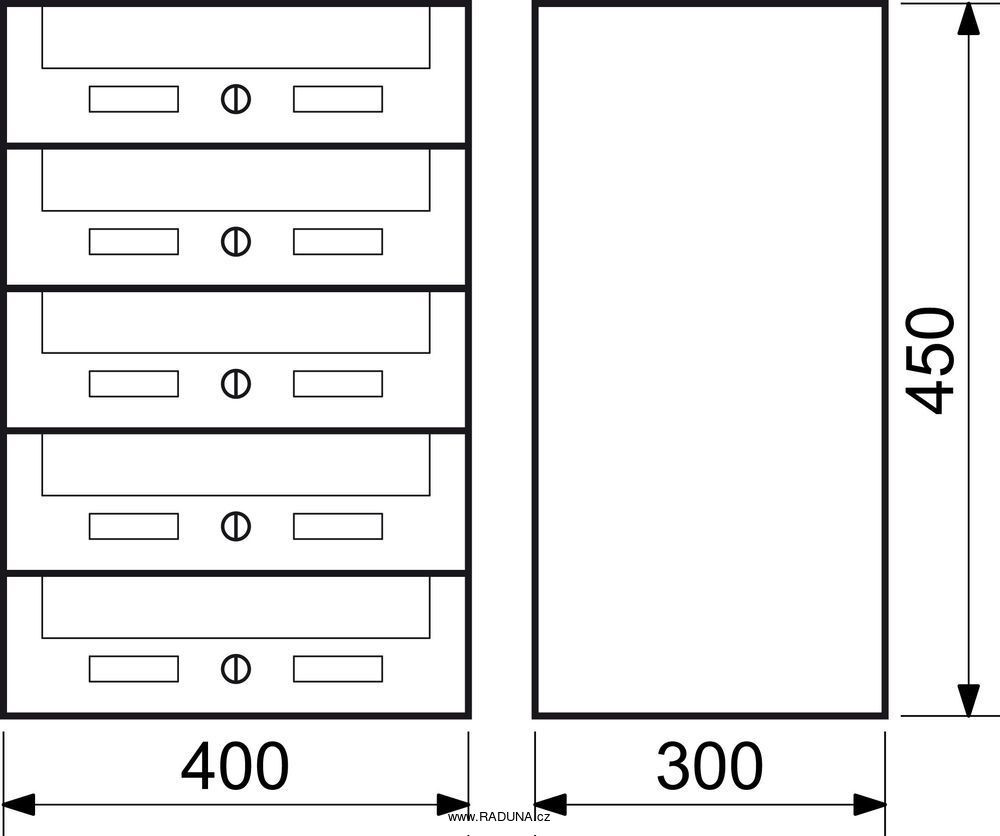 •Rozměr jednotlivé schránky š/v/h: 400×85×300 mm